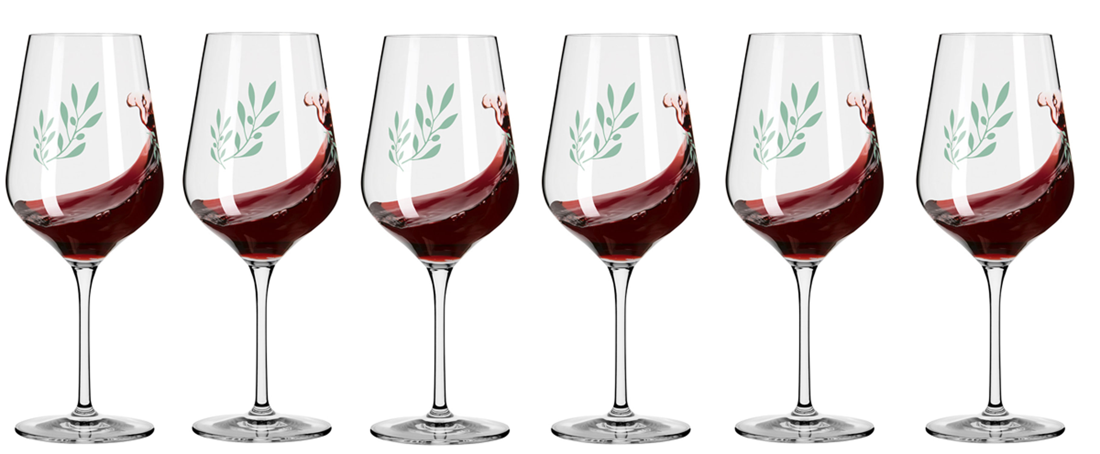 Dekomiro Set Ritzenhoff Organix Rotwein 6er Gläser mit Glaseinigungstuch zeigt grünen Charakter.